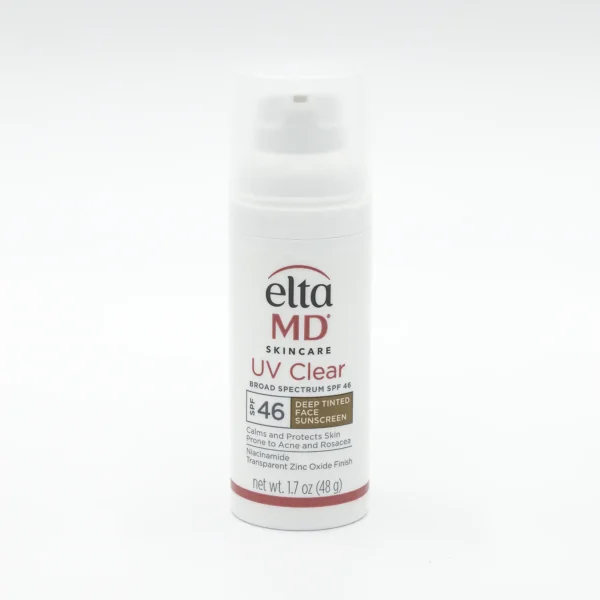 Designed and tested on deeper skin tones, EltaMD UV Clear Deep Tinted Broad-Spectrum SPF 46 is a lightweight, oil-free sunscreen formulated with 5% Niacinamide (Vitamin B3) to help reduce the appearance of blemishes and discoloration on your skin. This broad-spectrum sunscreen contains micronized Zinc Oxide to protect your skin from damaging UVA (aging) and UVB (burning) rays.