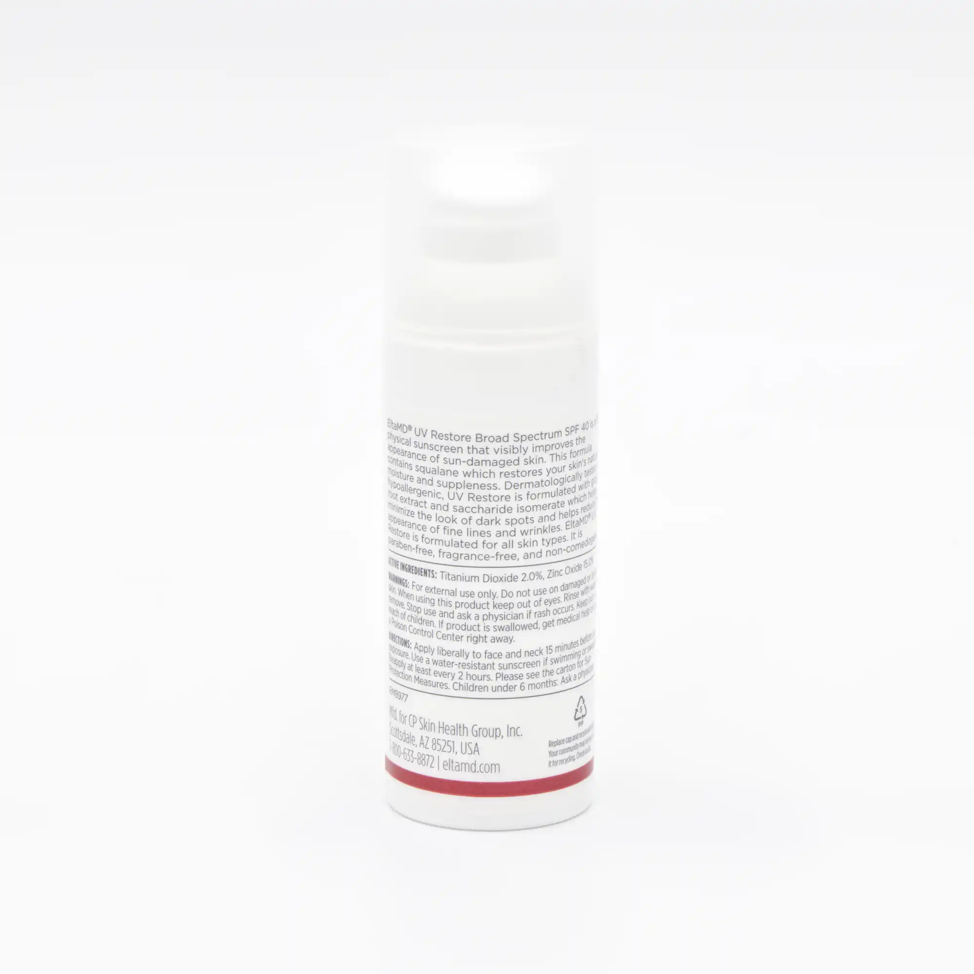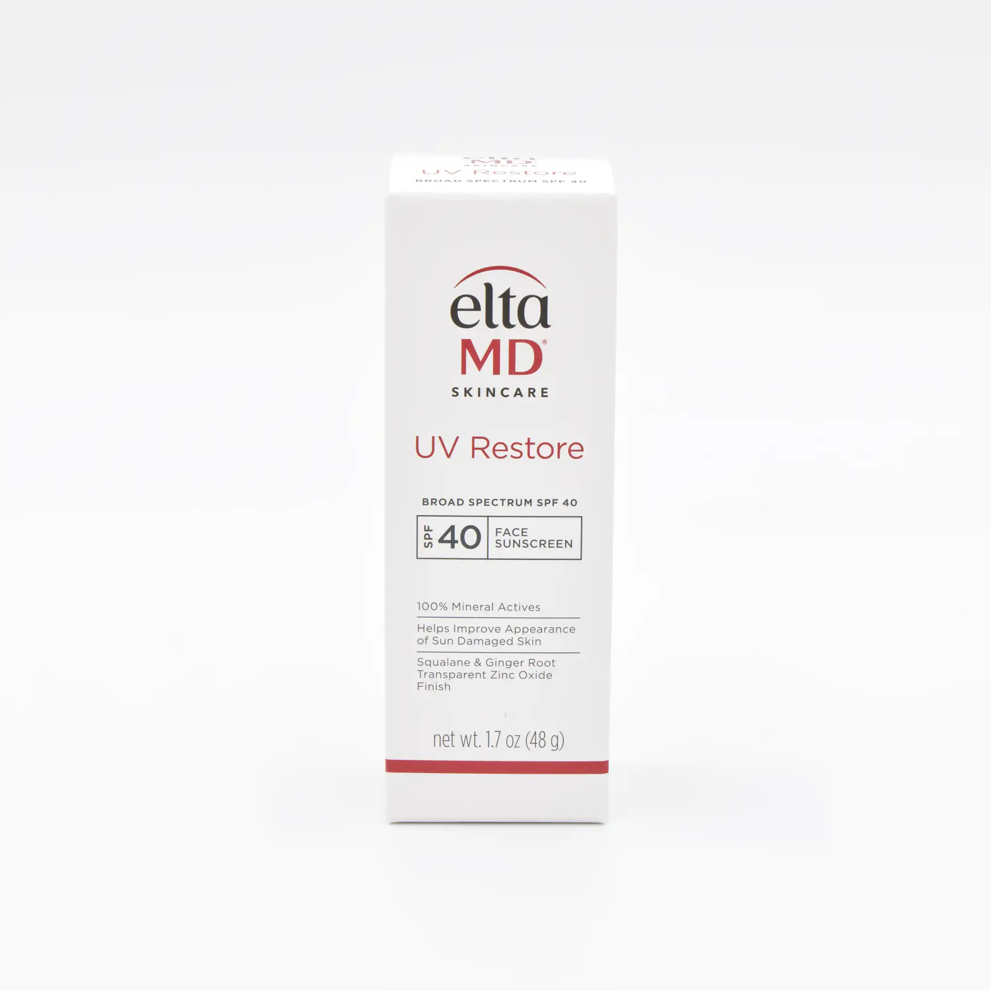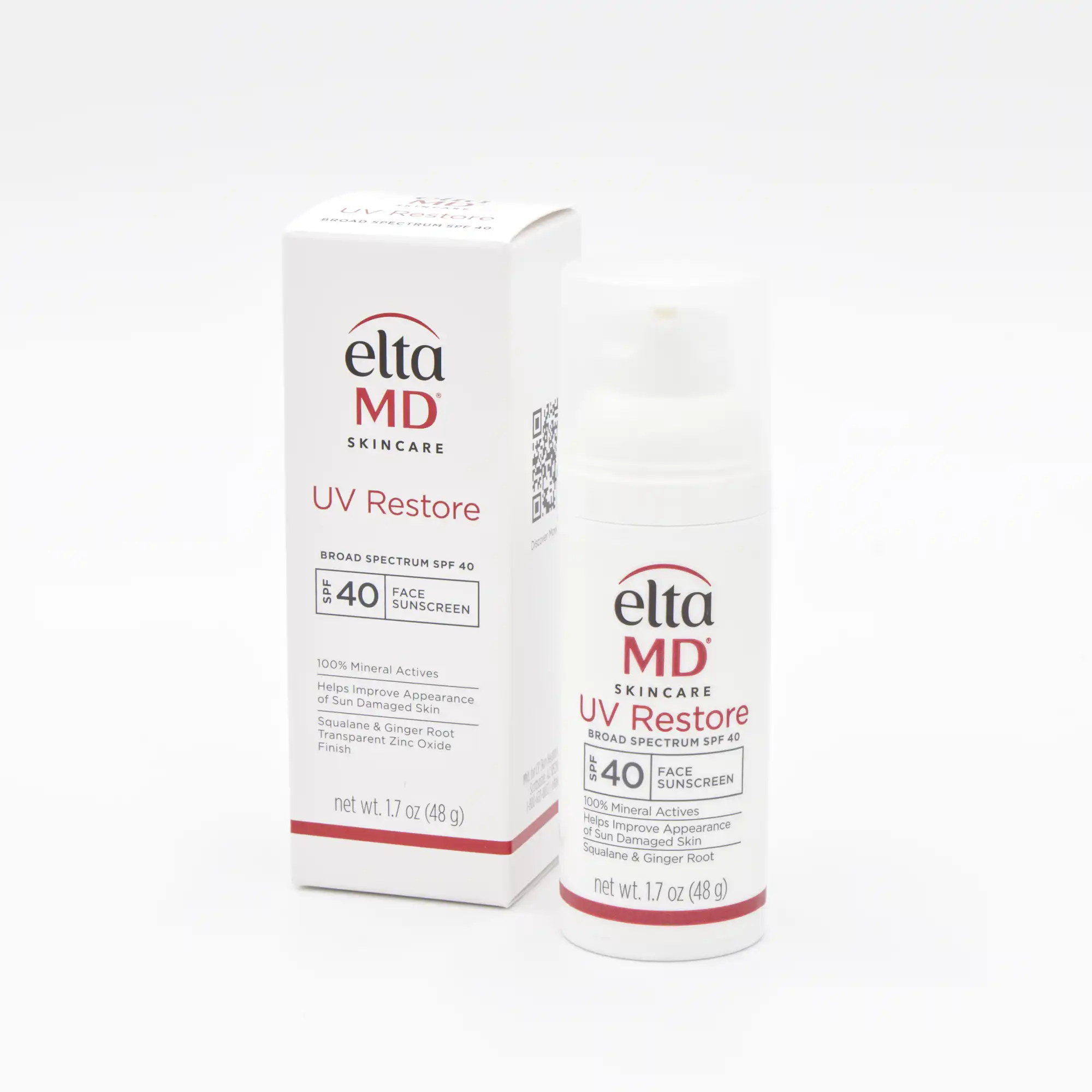 EltaMD UV Restore Broad-Spectrum SPF 40 is a 100% mineral sunscreen that improves sun-damaged skin and helps revitalize it. This advanced formula contains Squalane which restores skin's natural moisture and suppleness.